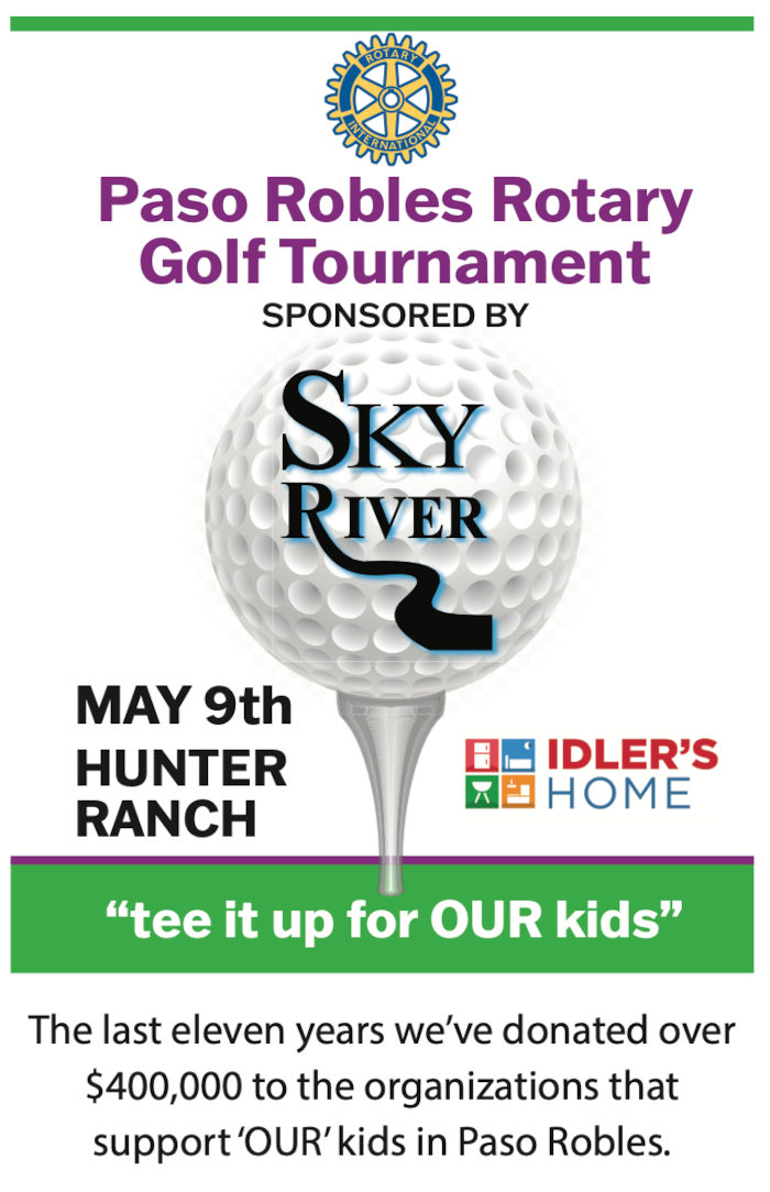 During the past 33 years, the Paso Robles Rotary Club has organized and held a golf tournament as one of our major fundraisers. In the last eleven years alone, we’ve raised over $400,000 for ‘OUR’ kids in Paso Robles. Proceeds generated by the Golf Tournament go to organizations that support the children of Paso Robles. Among those are: The Boys and Girls Club, CASA, Youth Arts Foundation, Children’s Museum, Boy Scouts, Morning Star Youth Ranch, Youth Soccer, Youth Works, Paso Middle Schools, Paso High School and SKILLS USA.